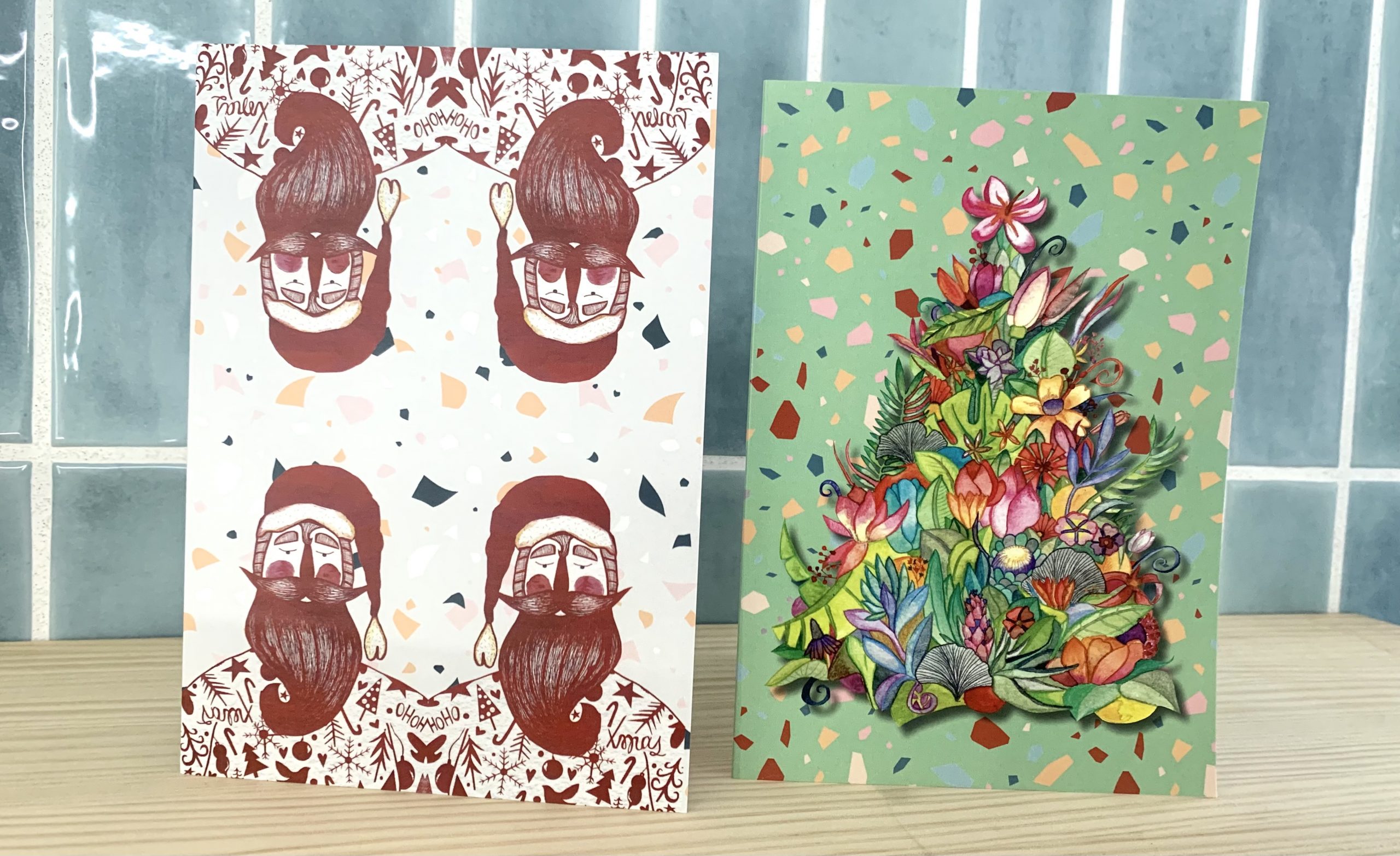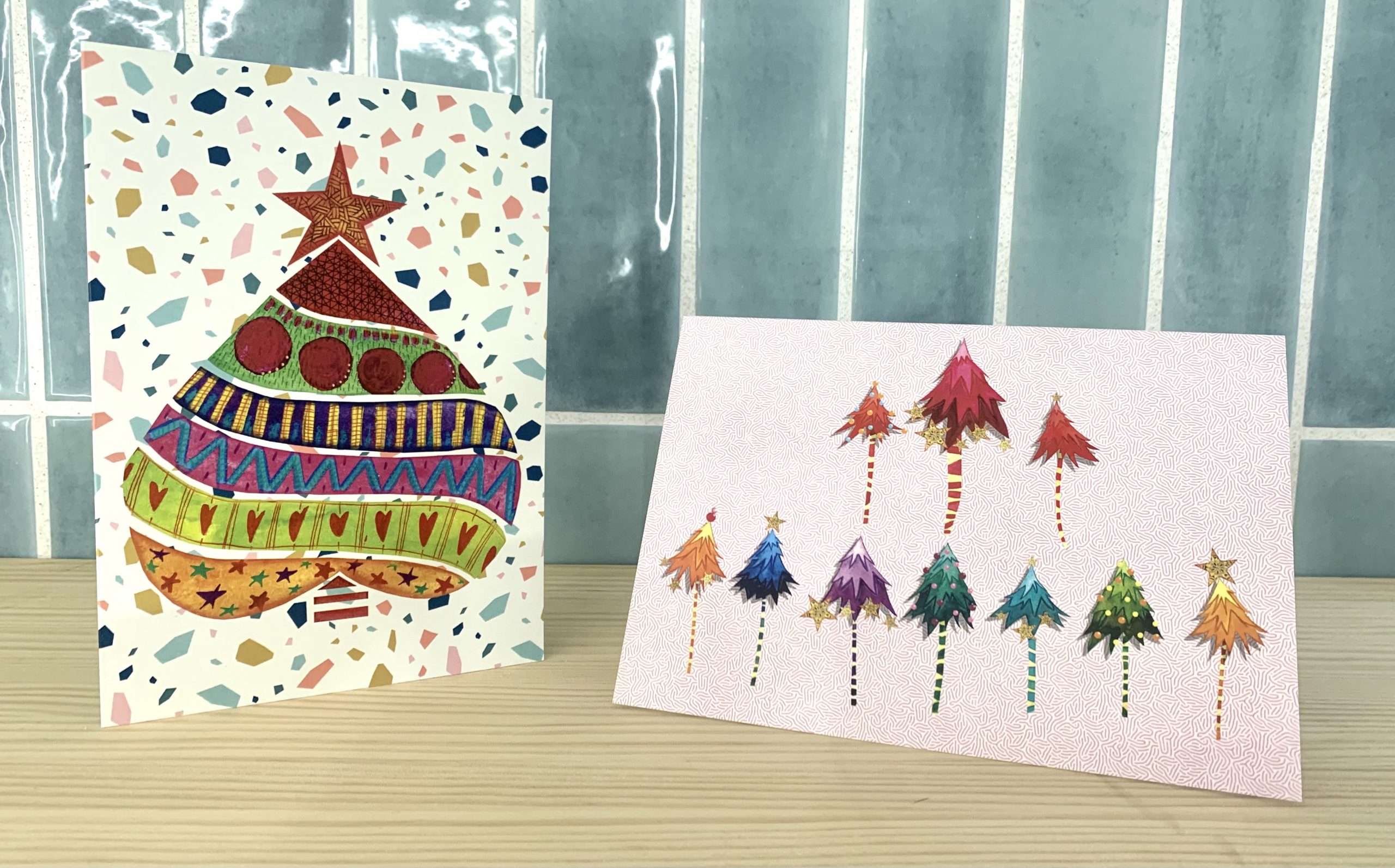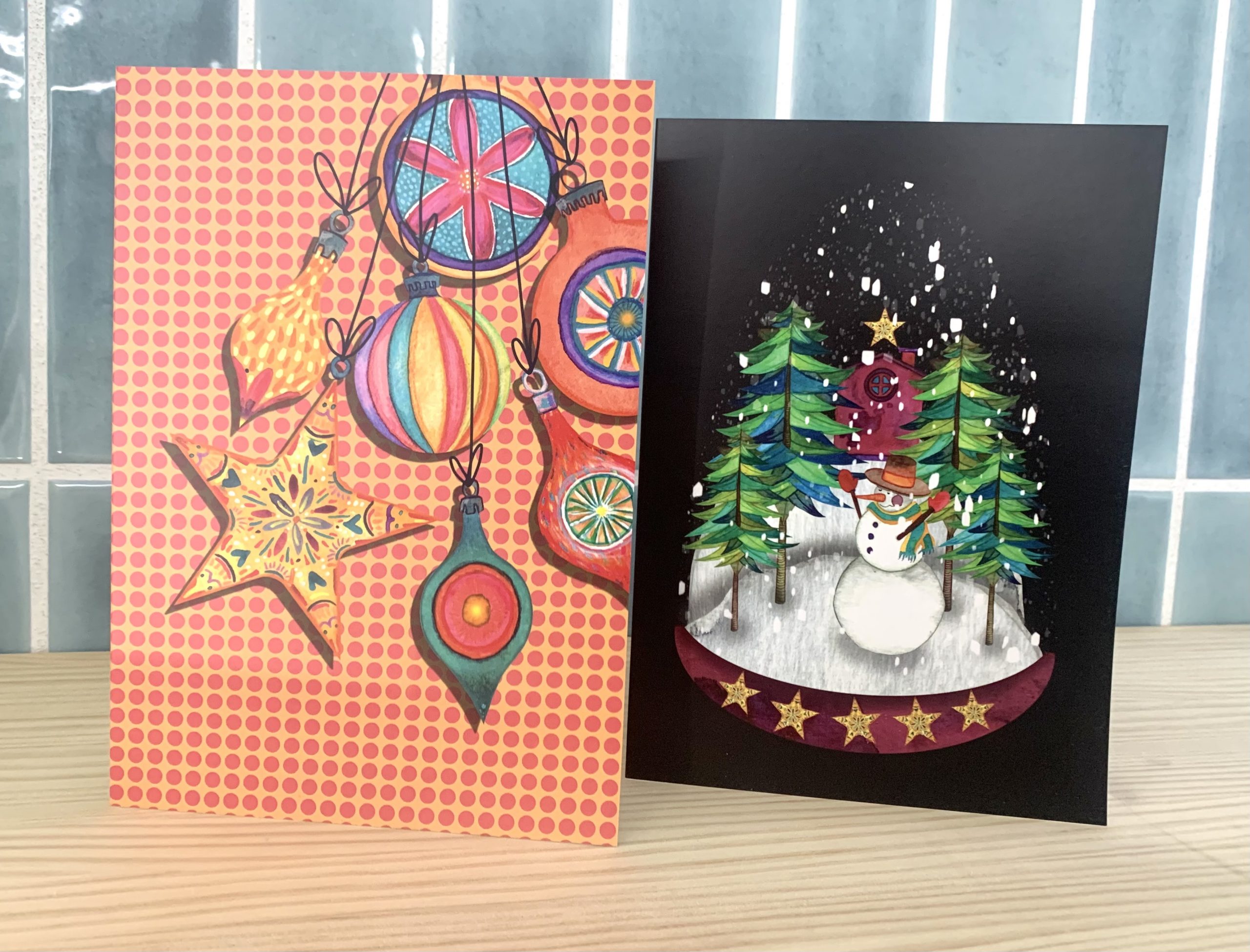 Tarjetas Navideñas para alegrar las fiestas. Diez modelos variados. Realizada cada tarjeta en cartulina gráfica DIVA de 250 gramos, plastificada mate por una cara.